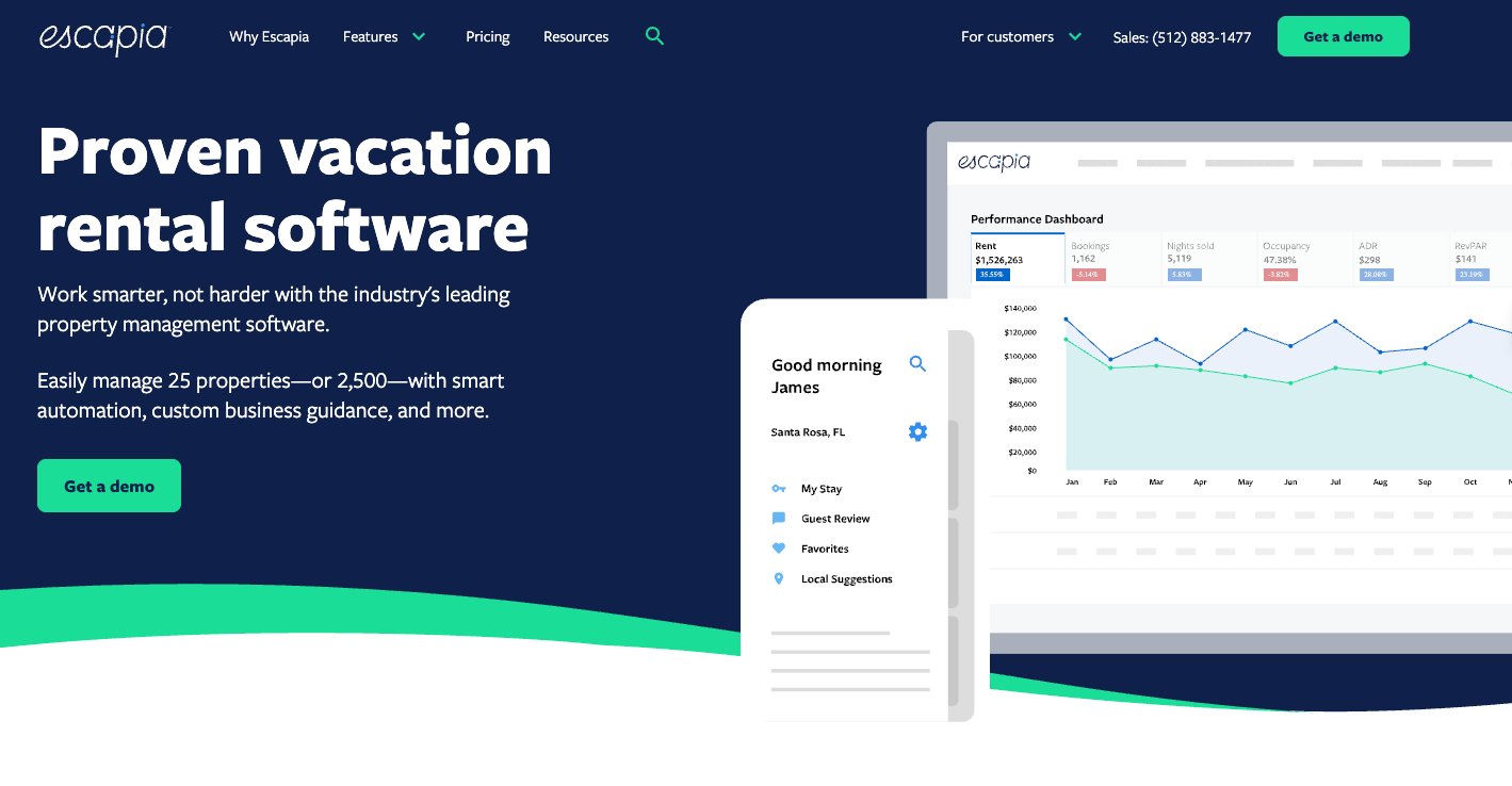 Escapia is a cloud-based vacation rental software (part of the Expedia Group) designed to make managing large rental portfolios easier. It’s a veteran in the industry and is tailored to professional property management companies that need trust accounting, owner management, and enterprise-grade reporting. Escapia leverages Expedia’s resources to provide unique data insights and integration with Vrbo. In short, it focuses on scalability and accounting rigor, catering to managers of dozens or hundreds of units.